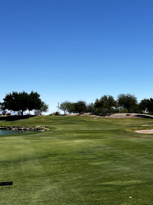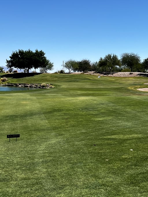 Textbook par to turn in 40 (+4), with the back nine waiting in the desert sun.