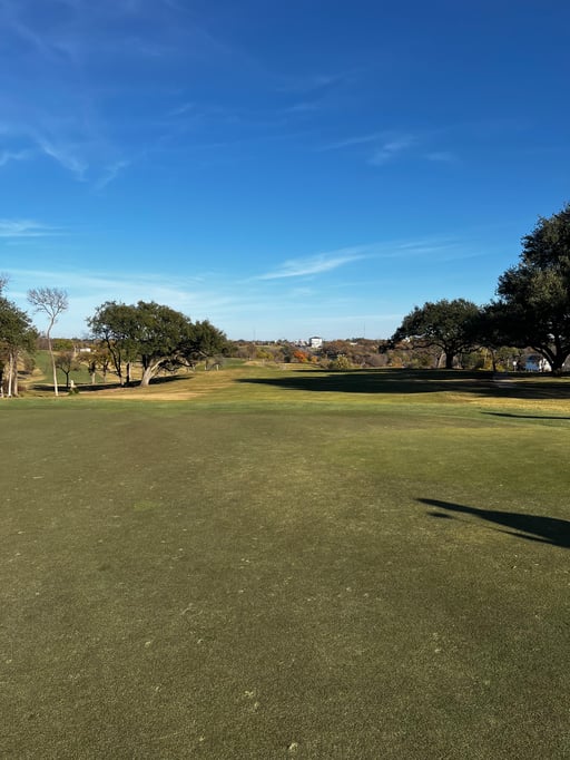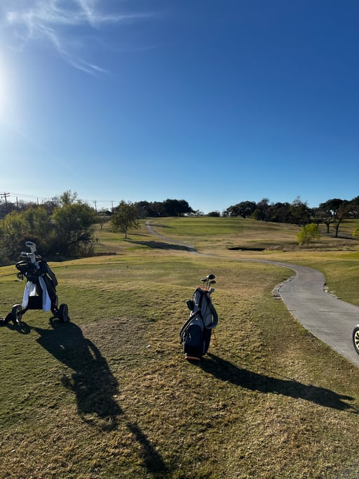 After a decent drive and a less-than-ideal 5‑wood, Brian missed just long left. A tidy up-and-down from off the green delivered a calming par.